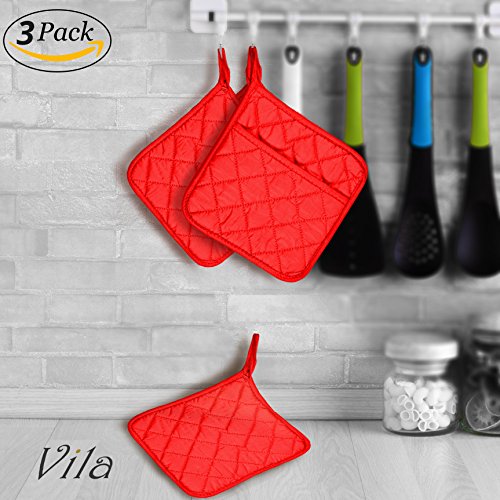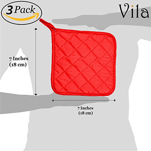 3-pcs Potholder by Vila -- Protects your hands from kitchen burns - Heat Resistant - Durable and Easy To Store