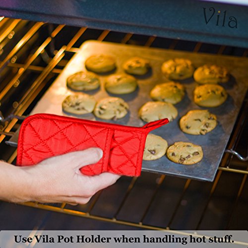 ✔ BAKING BECOMES SUPER EASY WITH NO BURNS --- 3 pack Potholder by Vila is made from institutional grade terry cloth on one side and a heat-resistant silverstone lining on the other. It provides maximum heat protection to your hands while baking and handling hot pots, pans, dishes, casserole dishes and more.