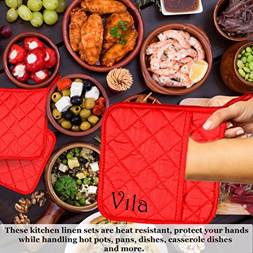 ✔ EASY TO STORE, WASHABLE & REUSABLE --- The best part about Vila potholders is that each has a hanging loop that allows for easy storage. Hang anywhere in the kitchen for a quick reach when you need them. Since this is 100% cotton, these potholders are machine washable and reusable.