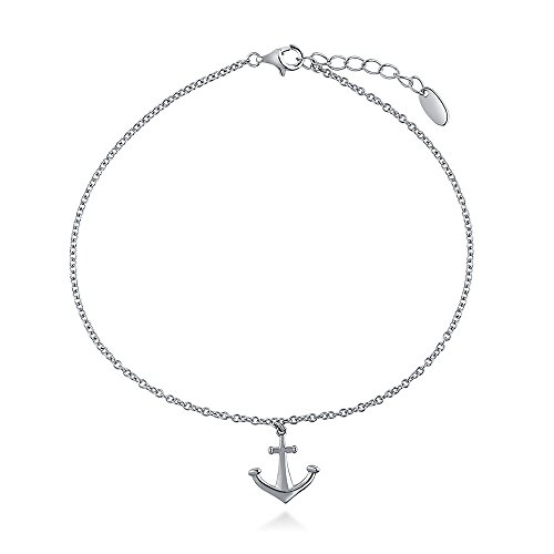 Anchor your life with positivity and wear this anklet as a reminder that you have what it takes to navigate the seas of life. Made of rhodium plated fine 925 sterling silver. Anklet measures 9 inch with 1 inch extension in length, 1mm in width. Lobster claw clasp. Imported.