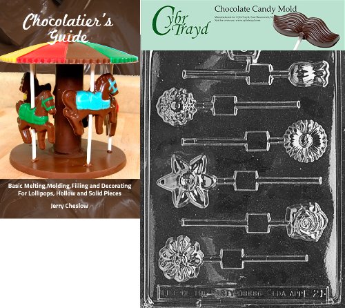 Cybrtrayd "Assorted Flowers Lolly" Fruits and Vegetables Chocolate Candy Mold with Chocolatier's Guide