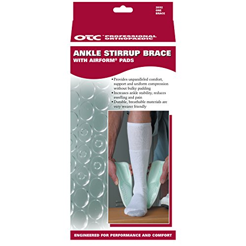 -. Binding : Health and Beauty -. Brand : OTC -. Feature : Provides unparalleled comfort, support and uniform compression without bulky padding and increases ankle stability while reducing swelling and pain. / Unique pulsating multi-chamber air bladder provides a customized fit with each step. Air bladder is enclosed and protected to prevent puncture. / Soft flexible edge onto the hard outer shell helps eliminate pressure points on the ankle and increases wearing comfort. / Quick-adjust heel loops allow for a custom fit and permit unobstructed plantar and dorsi-flexion. / Available Sizes: Universal - One Size Fits Most -. Label : Surgical Appliance Industries -. Manufacturer : Surgical Appliance Industries -. MPN : 2092 -. NumberOfItems : 1 -. PackageQuantity : 1 -. PartNumber : 2092 -. ProductGroup : Health and Beauty -. ProductTypeName : HEALTH_PERSONAL_CARE -. Publisher : Surgical Appliance Industries -. Studio : Surgical Appliance Industries -. Title : OTC Ankle Stirrup Brace with Airform Pads