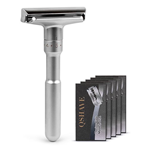 Quality Adjustable Double Edge Classic Safety Razor (1 Razor & 5 pcs Titanium Coated Blades)