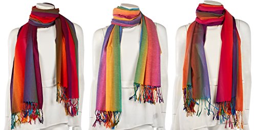 Binding : Apparel Product Description These beautiful vibrant colored scarves have a soft silky feel.This Scarf Wrap for Women can be wrapped and draped in many different ways to complement whatever you're wearing. This Gradient Rainbow Pashmina Scarves is an excellent choice for gifts, holidays, seasons, birthdays, Mother's Day and other occasions. 0