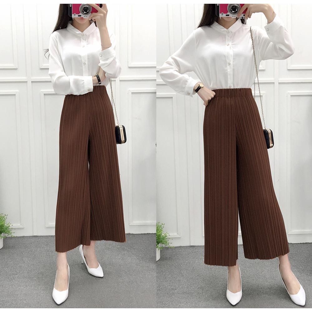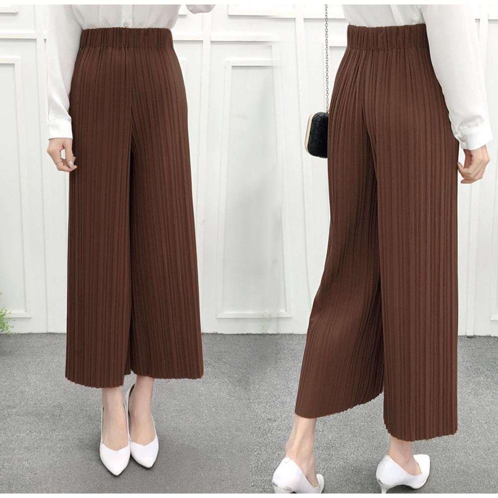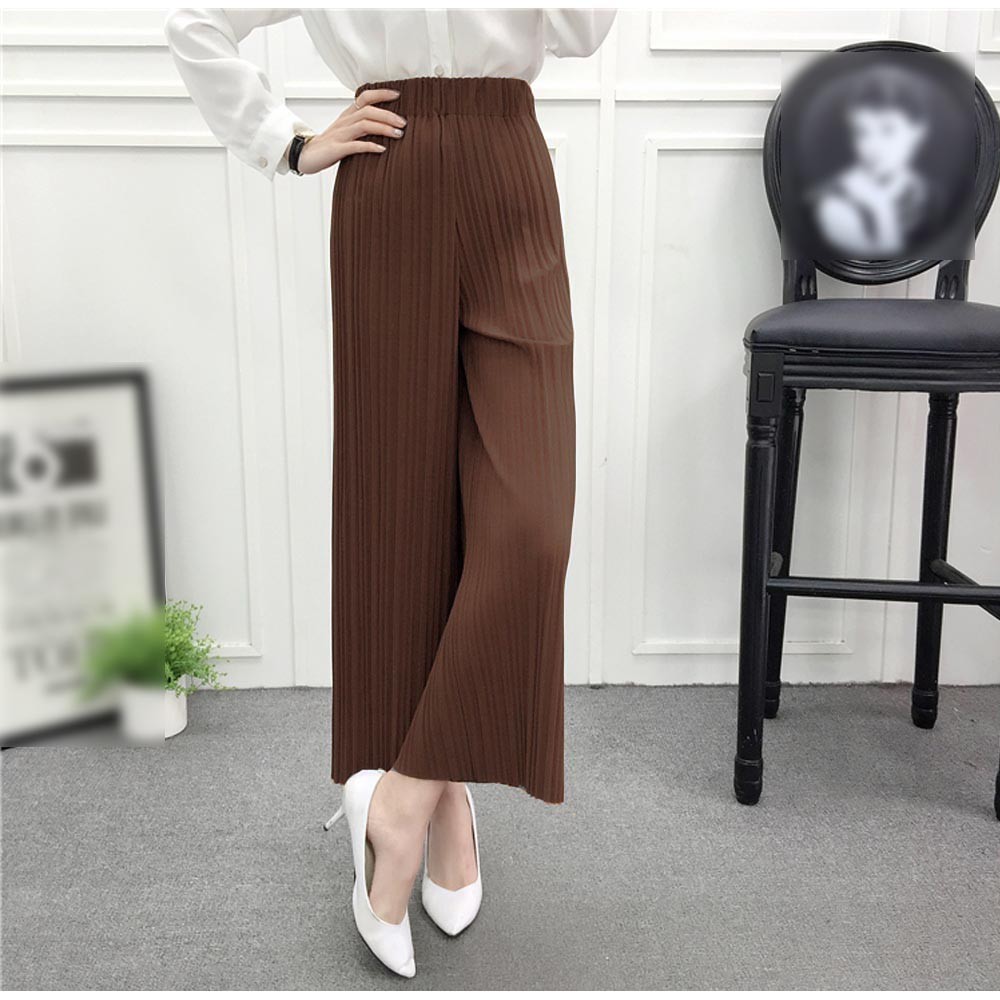 まるでロングスカートのようなルーズシルエットのきれいめプリーツガウチョパンツ