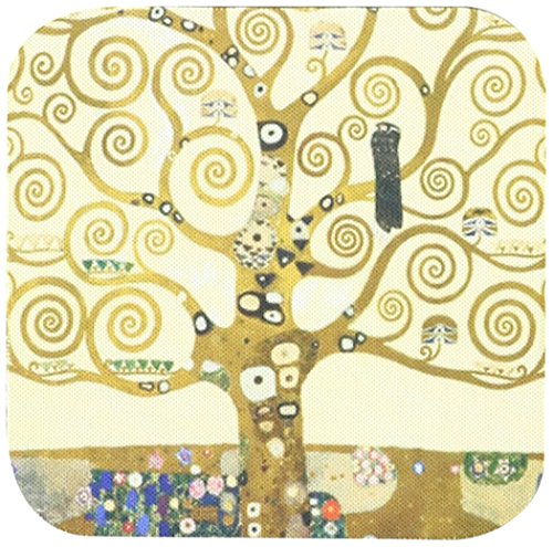 3dRose cst_155632_1 The Tree of Life 1909 by Gustav Klimt-Stylish Swirling Branches-Brown-Fine Art Deco Swirls-Soft Coasters, Set of 4