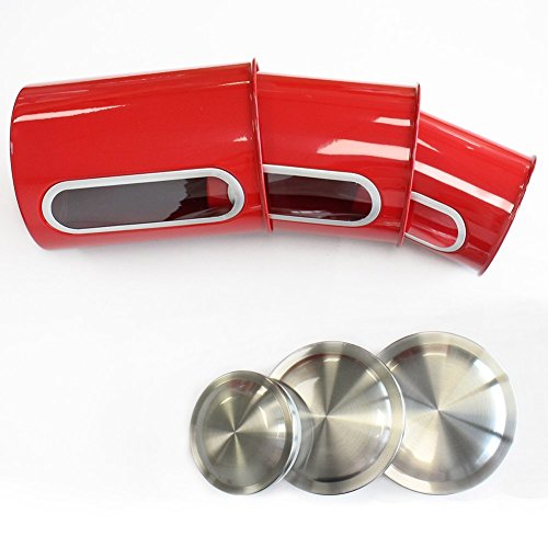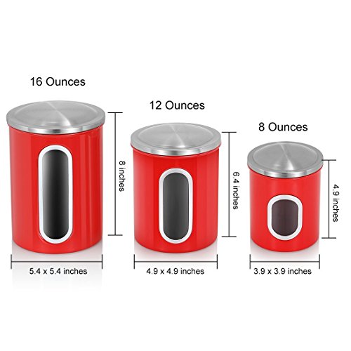 MLO E-CO Canisters Sets for Tea Coffee Sugar Flour Food Canisters with Airtight Lids, 3-Piece Set (Red)