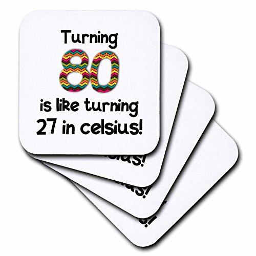 3dRose cst_184967_2 Turning 80 is Like Turning 27 in Celsius Humorous 80Th Birthday Gift Soft Coasters, Set of 8