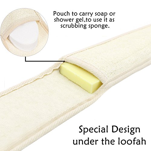 Exfoliating Loofah Back Scrubber, Long Loofa Back Strap with Soap Pocket, Back Scrubber for Shower, Body Scratcher Back Massage for Men and Women