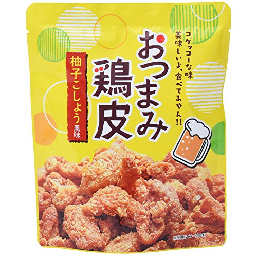 原材料:鶏皮、米粉、植物油脂、柚子胡椒風味シーズニング(食塩、香辛料、デキストリン、砂糖、柚子パウダー、レモン果汁パウダー)、食塩/調味料(アミノ酸等)、香料、リン酸三カルシウム、酸味料