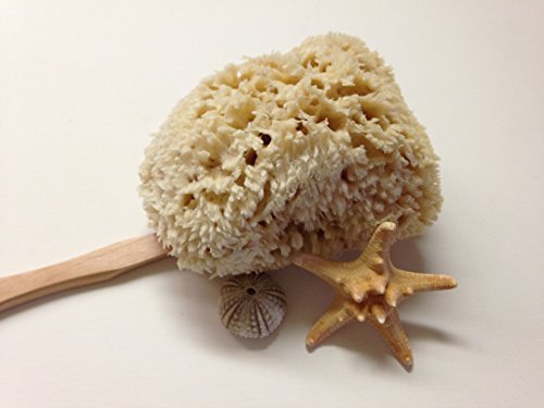 NATURAL PREMIUM WOOL SEA SPONGE ON A STICK – BACK SCRUBBER 5"to 6" sponge