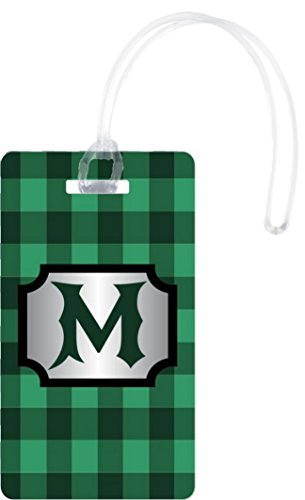 Rikki Knight M Initial GRN Plaid Monogrammed Flexi Luggage Tags