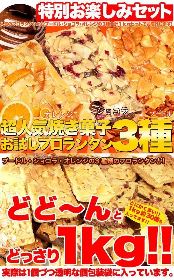 人気のフロランタンからプードル・ショコラ・オレンジの3種合計1kgセットをお届けします。 |