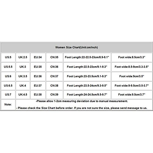 Women Size Chart(Unit:cm/inch) US:5 UK:2.5 EU:34 CN:35 Foot Length:22-22.5cm/8.7-8.9" Foot wide:8.5cm/3.3" US:5.5 UK:3 EU:35 CN:36 Foot Length:22.5-23cm/8.9-9.1" Foot wide:8.5-9cm/3.3-3.5" US:6 UK:3.5 EU:36 CN:37 Foot Length:23-23.5cm/9.1-9.3" Foot wide:9cm/3.5" US:6.5 UK:4 EU:37 CN:38 Foot Length:23.5-24cm/9.3-9.5" Foot wide:9-9.5cm/3.5-3.7" US:7 UK:4.5 EU:38 CN:39 Foot Length:24-24.5cm/9.5-9.7" Foot wide:9.5cm/3.7" 0