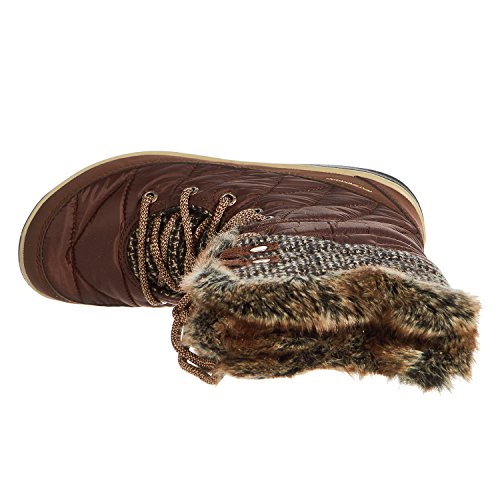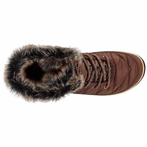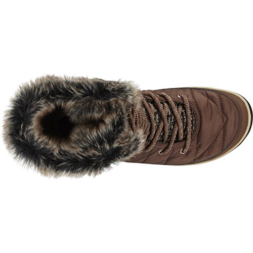Binding : Apparel Product Description Omni-Techa"¢ waterproof, breathable membrane locks out water, while allowing moisture to escape. 200 g insulation retains warmth. Rated for temperatures down to -25A°F/-32A°C. Waterproof, quilted woven textile uppers. Lace-up closure. Metal rivets and aglets. Plush and cozy faux fur collar. Textile lining. Removable, contoured PU footbed. Non-marking Omni-GripA® Advanced Traction outsole delivers optimal traction. Imported. 0