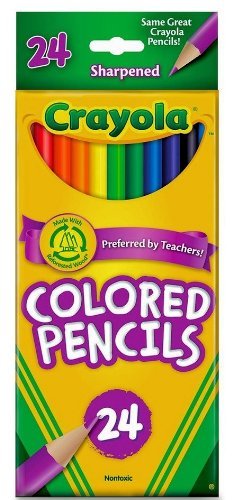 Great for use at home or school, Crayola Colored Pencils are an essential creative tool for kids. The 24 pre-sharpened colored pencils in this pack contain a wide range of vivid colors that help inspire children's self-expression and imagination. With thick, soft leads that won't break easily, the pencils create brightly colored lines that are great for school projects and detailed artwork. View larger Great for Projects at Home and School Colored pencils are an indispensable tool at home and in the classroom, ideal for creating and coloring maps, completing art or science projects, and making signs and labels. With an easy-to-grip design and thick, soft lead, Crayola Colored Pencils offer better control and won't break easily under pressure. Mix and Blend with Smooth Colors Kids will love to use these durable, vibrant pencils. Small enough to fit in a book bag, this portable box holds a variety of colors. The smooth Crayola colors are great for color mixing and blending as well as for practicing more detailed techniques. Made from Reforested Wood Crayola Colored Pencils are created from reforested wood instead of wood from old-growth forests. For every tree used in the manufacturing of Crayola Colored Pencils, a new tree is planted. About Crayola: Art and Imagination Crayola art supplies and activities help children express, create, and connect through colorful play. What's in the Box Crayola Colored Pencils, 24 Count. Product Features: Pack of 24 colored pencils Thick, soft leads won't break easily Smooth colors for mixing and blending Easily portable box for home or school use Made from reforested wood, not old growth forests.Feature