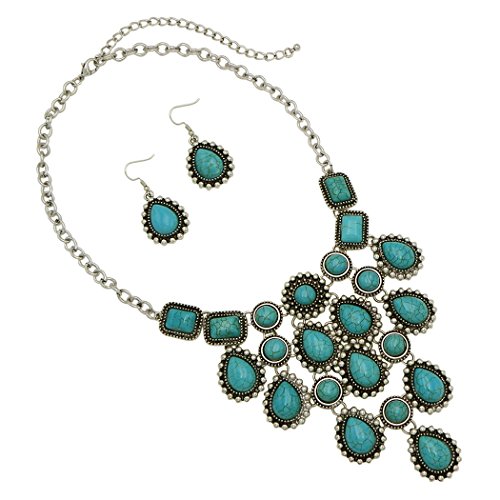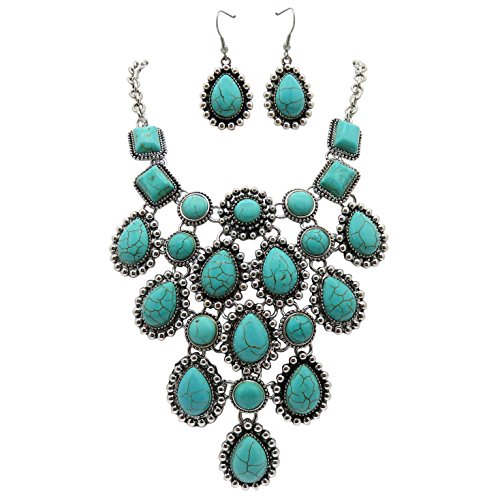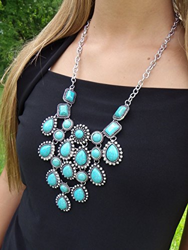 Southwest style statement necklace with turquoise color howlite stones