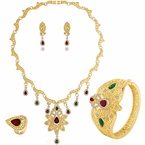 Gold Platet Jewelry Set of Necklace Bracelet Earrings Ring