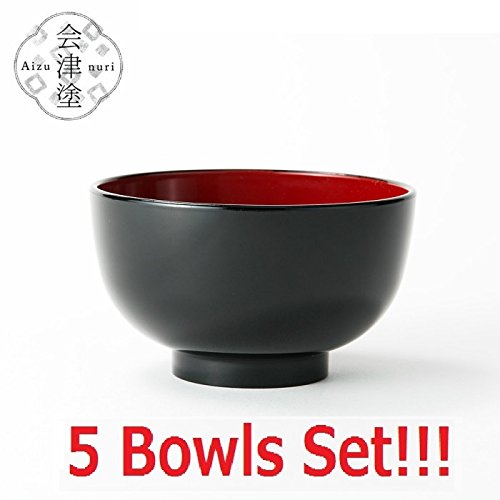 [5 Bowls Set] Asahi Kyouyou Japanese Black Smooth Bowls Set for Rice,Soup etc...