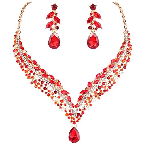 Necklace Length: 45.5cm(17.9")-51.5cm(20.3"), Attachment Size: 4.5cm(1.8") by 19.5cm(7.7"), Earrings Size: 1.5cm(0.6") by 4.8cm(1.9")