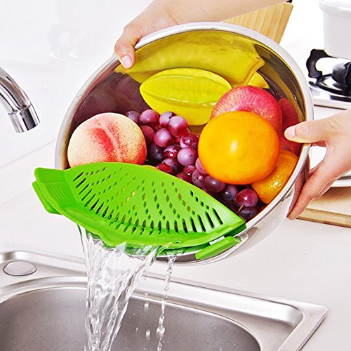 Kitchen Strainer Clip-On Silicone Strainer Ninonly Clip Drain Compact Flexible Colander for Pasta Spaghetti Ground Beef Grease Vegetables Snap on Bowls Pots Pans - Light Green