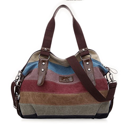 -. Title : WLE M Size Canvas Multi Zipper Pocket Oversized Simple Striped Stitching Retro Style Fashion Tote Shoulder Bags For Women Girls Ladies with Shoulder Strap