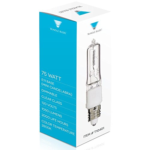 Triangle Bulbs T10401-2 120V 75W E11 Base Mini Candelabra Halogen Light Bulbs (Pack of 2), Clear