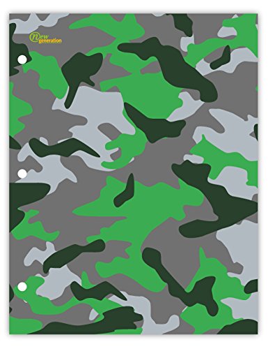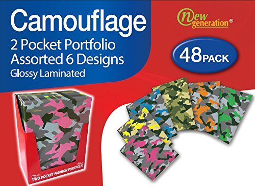 -. Title : New Generation - Camouflage - 2 Pocket Folder Heavy Duty 3 Hole Punch - 48 Folders per Pack in Display Box Assorted 6 Fashion Designs UV Glossy Laminated