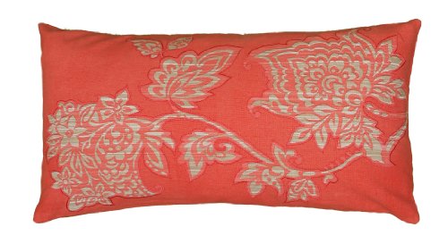 Rizzy Home T06533 Printed with Embroidery Details Decorative Pillow, 11 by 21-Inch, Coral