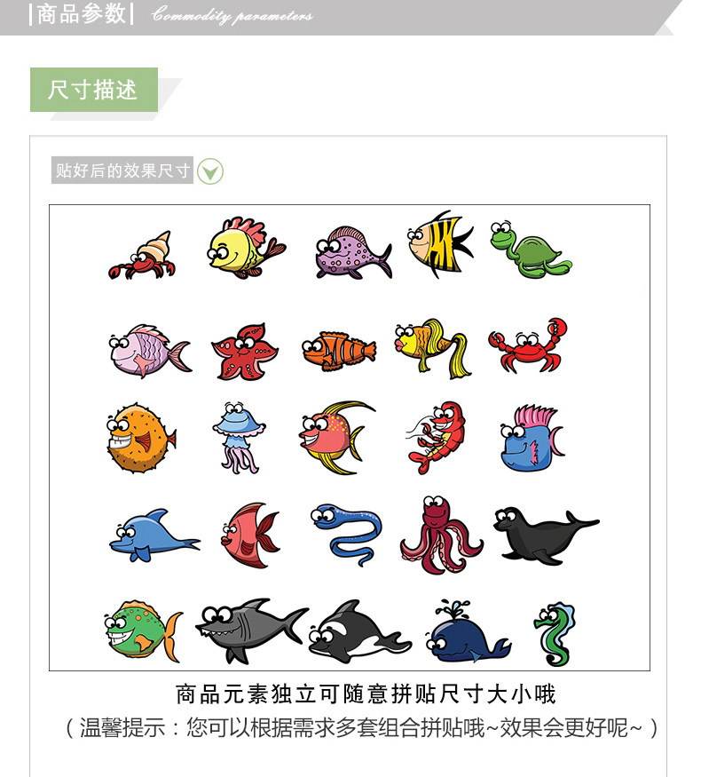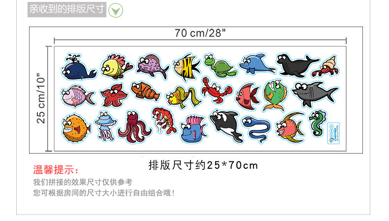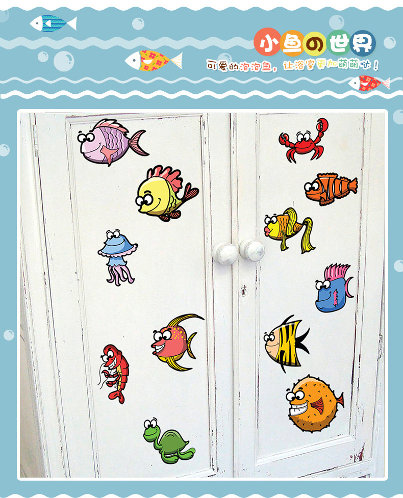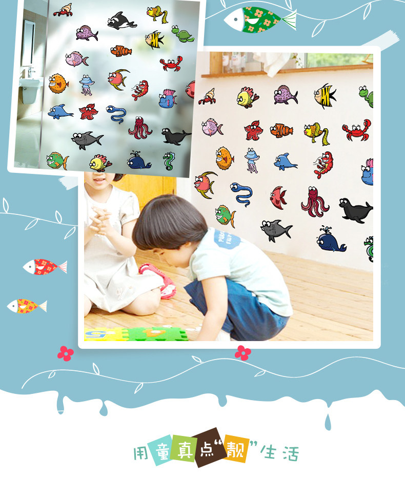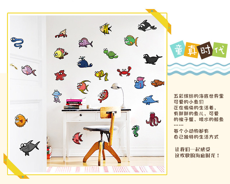 可爱卡通趣味多彩海洋动物贴纸pvc环保可移除海底鱼类装饰墙贴纸