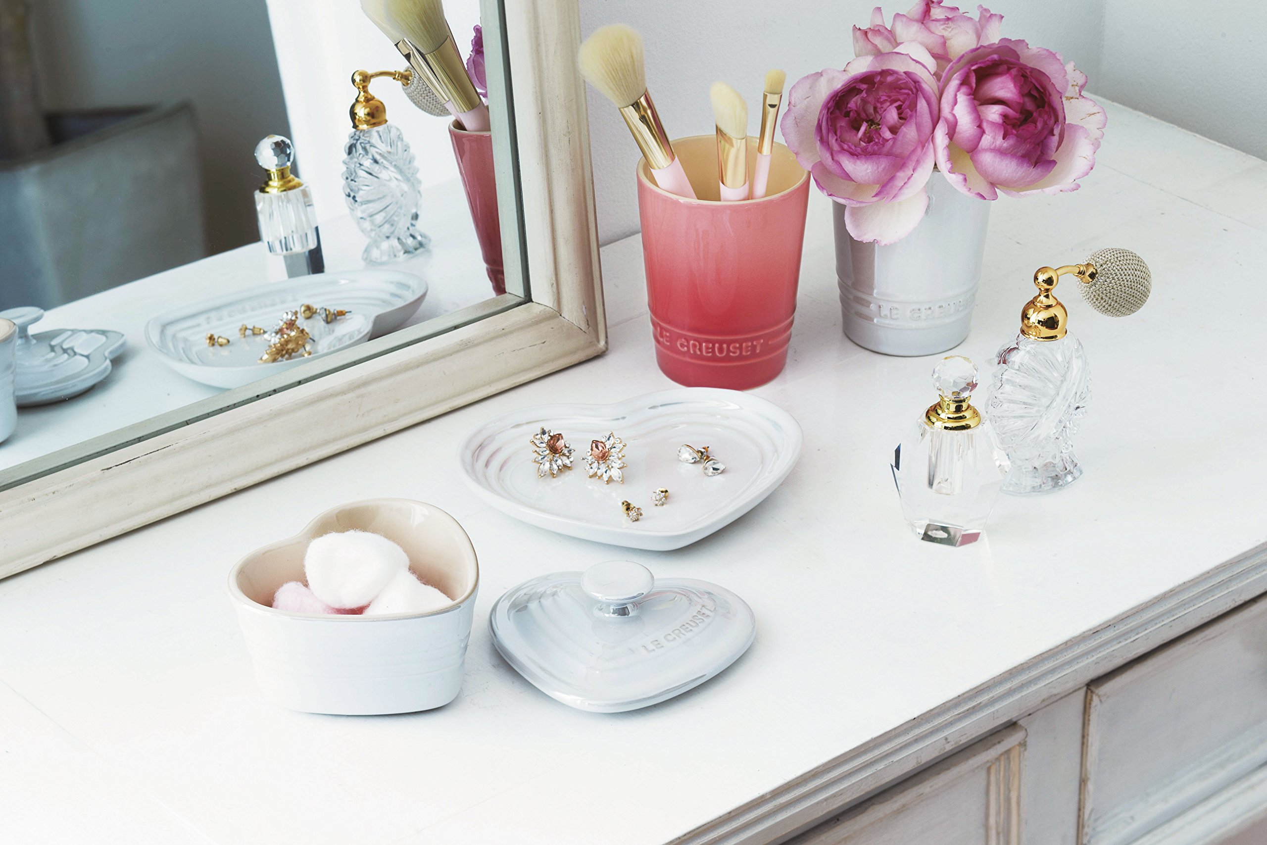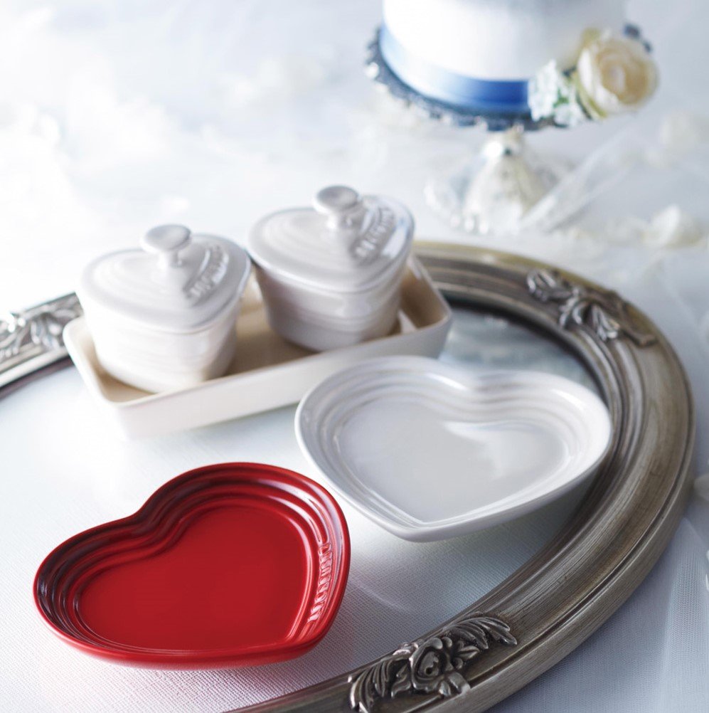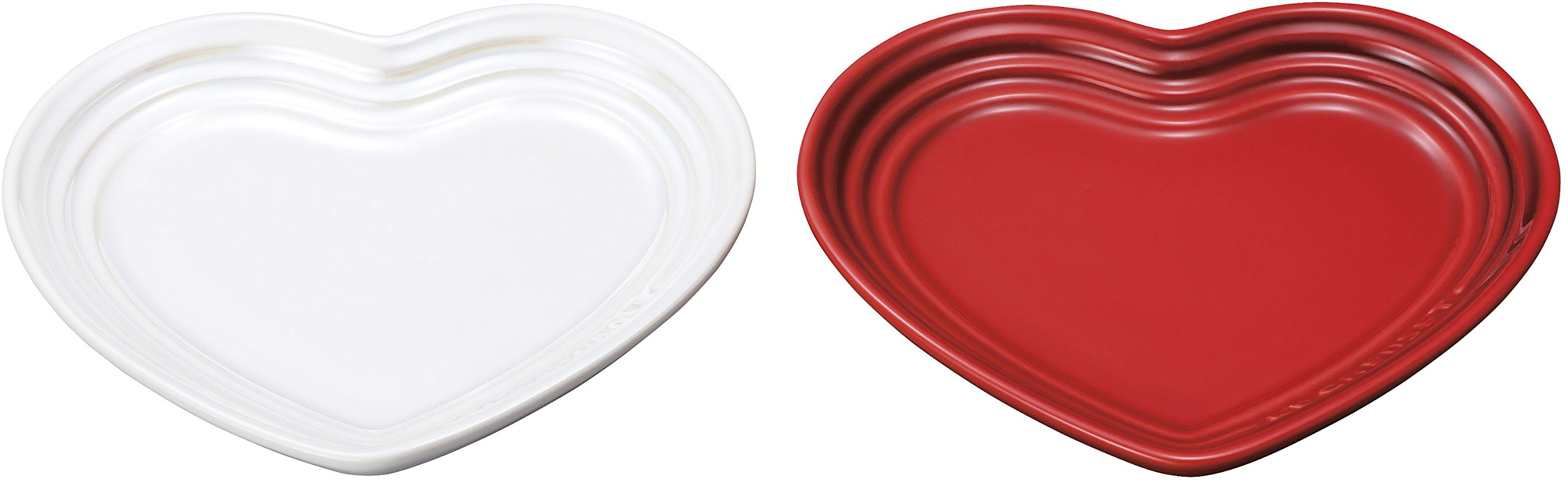 Le Creuset pair Heart plate S 2 pieces Cherry Red & White raster 910169-02-435 [Japan regular sale goods]