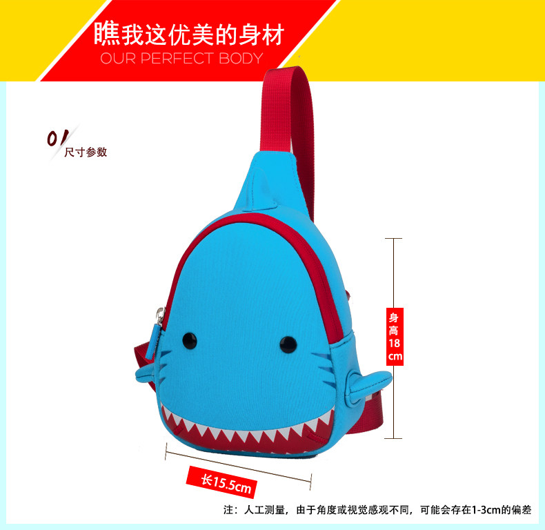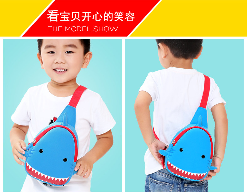 大鲨鱼小孩包包可爱小挎包儿童斜挎包男女单肩包韩国宝宝胸包