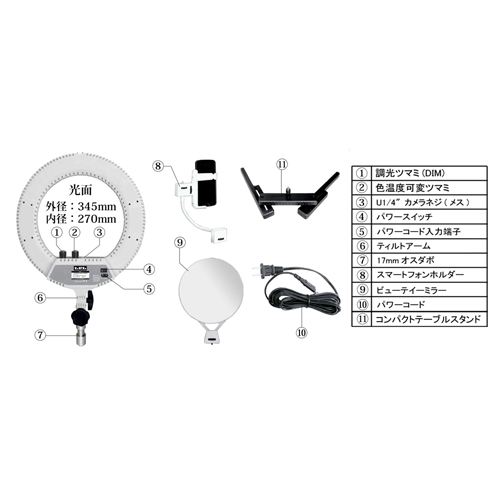 ●付属品:17mmダボ・スマートフォンホルダー・ビューティーミラー・コンパクトテーブルスタンド