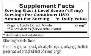 Facts about Natuit Premium Stevia Extract: - A sweet extract with no metallic taste. - Organic certification. Membranes and hot water are used to get the extract. - Standardized to Stevioside 95% (main sweetness factor in the leaves). - The only one in the market made from organic plants in South America. - No fillers.