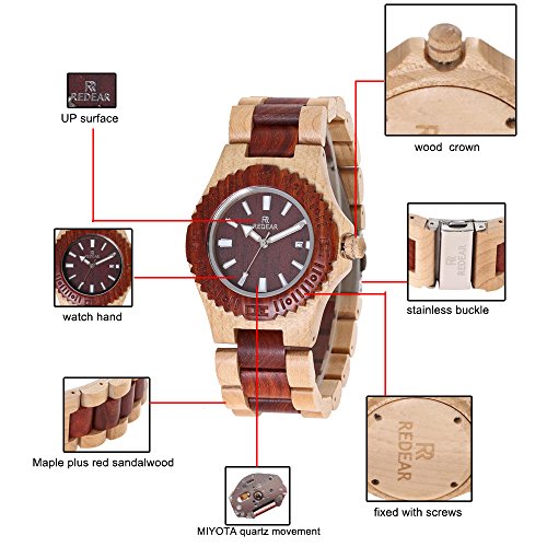 -. Title : 木製腕時計 ウッドウォッチ 腕時計 メンズ アナログ腕時計 天然木 カレンダー付き 彫刻 クリスマスプレゼント 贈り物