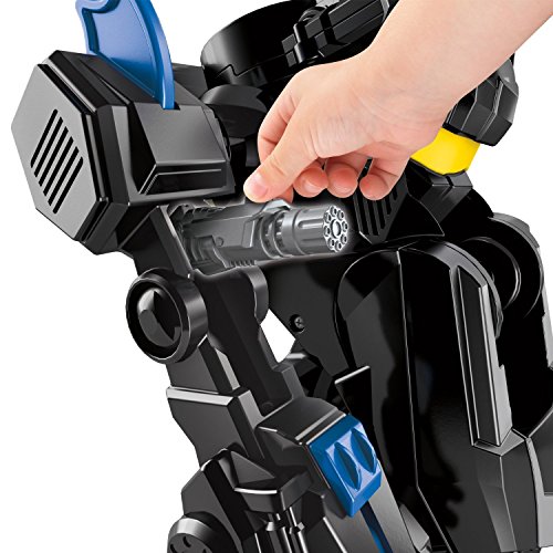 Includes Imaginext Transforming Bat Bot, Remote Control, Batman figure and four disks for launcher.