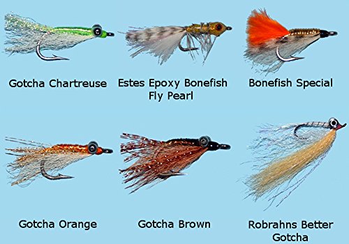 -. Feature : 6 Select Bonefish Flies / Robrahn's Better Gotcha #06, Gotcha Orange #06, Bonefish Special #06 / Estes Epoxy Bonefish Pearl #06, Gotcha Brown #06, Gotcha Chatreuse #06