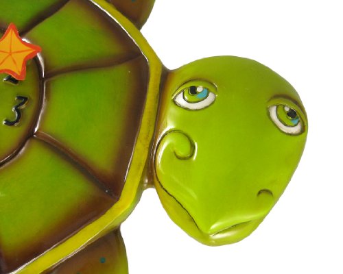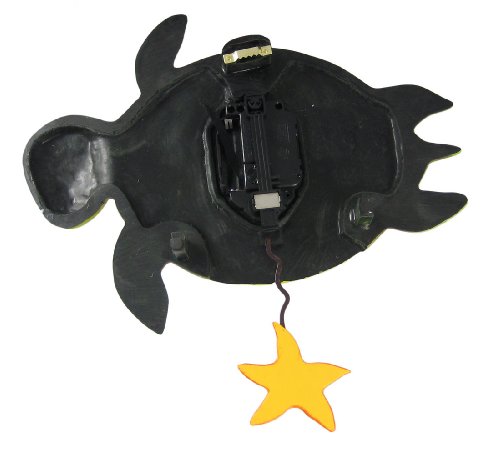 This hand-painted Shelldon Sea Turtle clock features swinging starfish pendulum and colorful clock hands. Delight your child by hanging this whimsical clock in their bedroom.