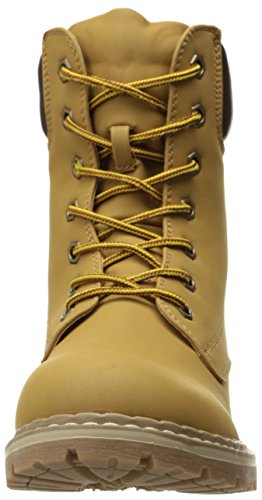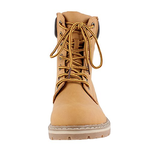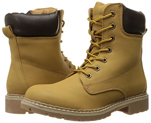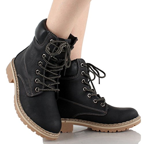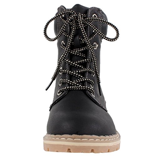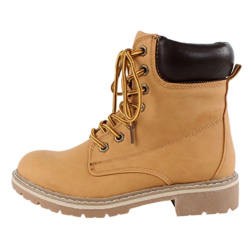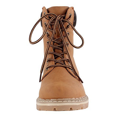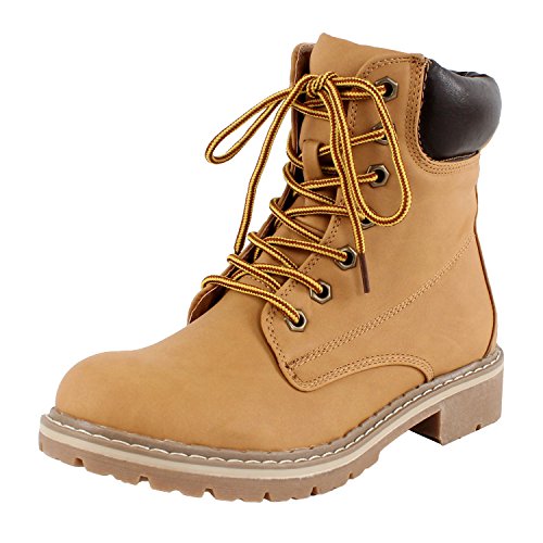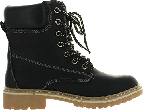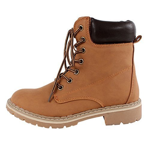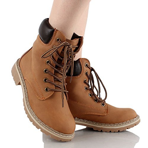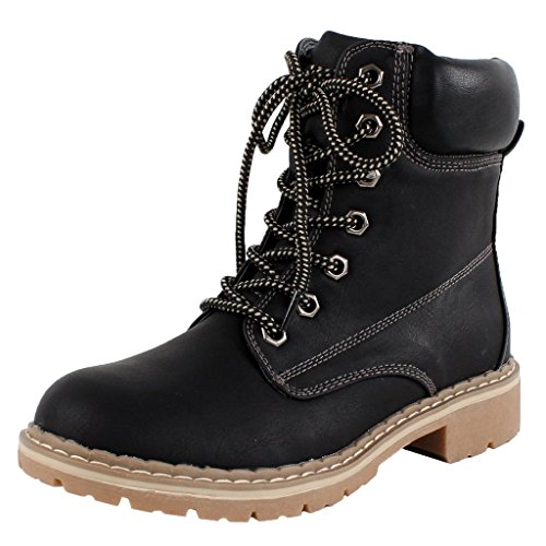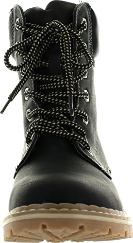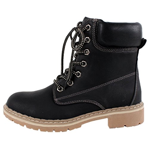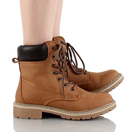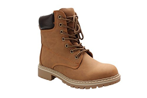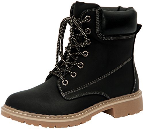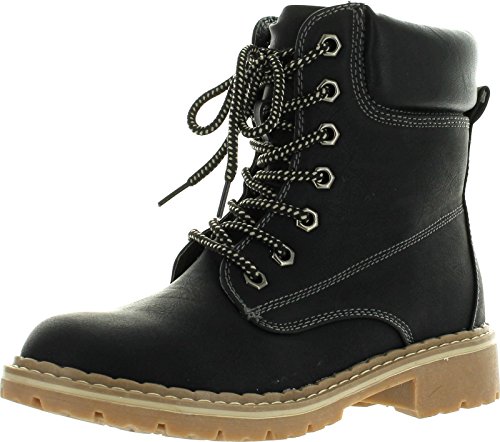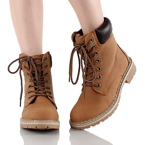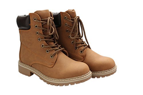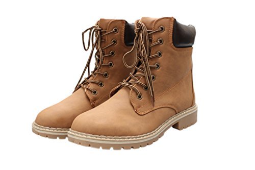 Product DescriptionDesigned with Faux-Leather upper, rich color solid pattern, padded ankle cuff, lace up with 7 eyes, chunky sole, completed with padded insole for all day comfort! The shoe is also water proof and slip-resistant.0