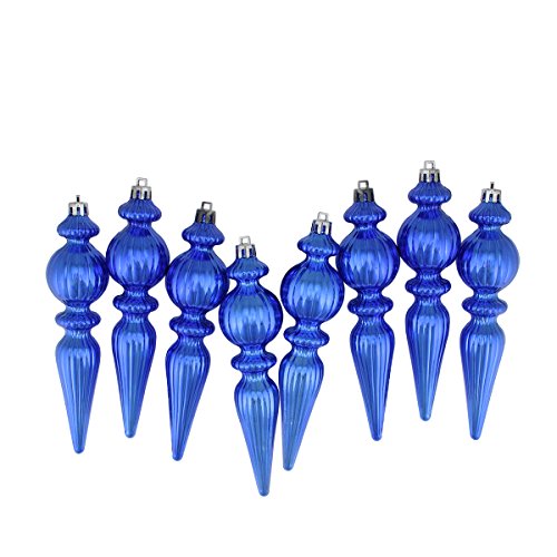 Northlight 8 Count Shiny Lavish Blue Ribbed Shatterproof Christmas Finial Ornaments, 6.5"