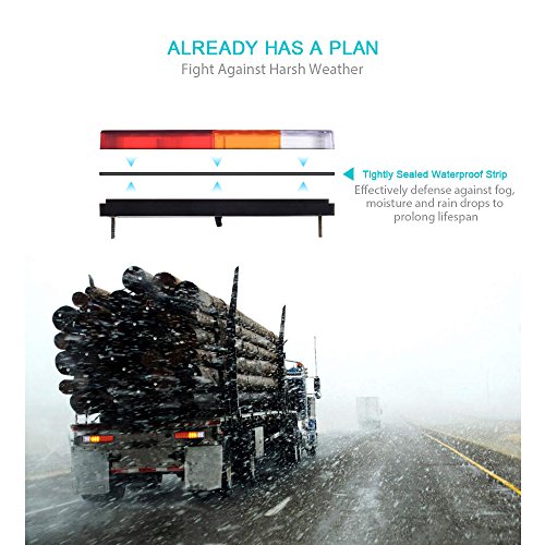 MICTUNING 20 LED Trailer Tail Lights Bar-Waterproof, DC12V Turn Signal and Parking Reverse Brake Running Lamp for Car Truck Red-Amber-White (2 Pack)