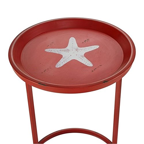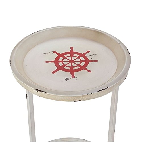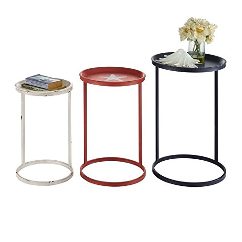 -. Feature : Finish: Distressed Iron / Nautical design and appeal / Nesting Tables / Navy: White Lighthouse, Red: White Starfish, White: Red Helm / Set of Three