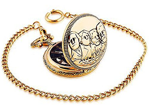 -. Title : Mt Rushmore Design on Case Black Hills Gold Men's Black Face Pocket Watch