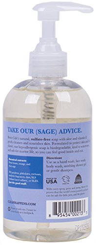 Plant-derived soap with aloe and vitamin E. Cleans, hydrates, and protects. Sulfate-free blend. Botanical Extracts. Soothes and condition hands and body. Kind to waterways and safe for marine life. Not tested on animals