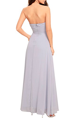 Party the night away in our stunning Women's Sleeveless Strapless Chiffon Maxi Dress. Panels of chiffon elegantly drape across a strapless,no-slip strips, and elastic at back, covers a strapless sweetheart bodycon with lightly padded cups, then gathers at the waist to form an elegant, draping sash. Cascading maxi skirt falls from a gathered waist. Hidden back zipper/hook clasp. This evening gown is perfect for special occasions such as a wedding, brides maids dress, reception, dance, ball, party, gala, prom, or homecoming. Complete the look with heels, jewelry, and a clutch.