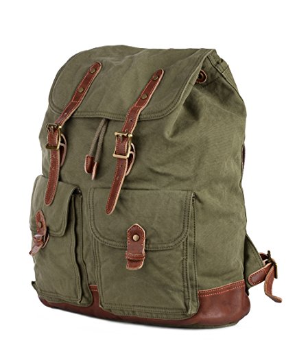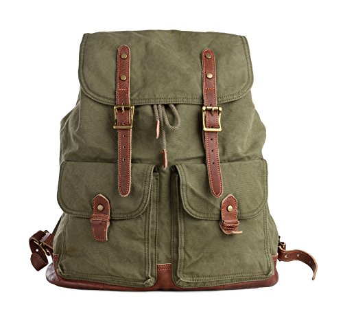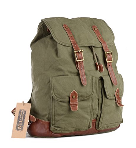 Gootium Specially Washed Vintage Canvas Backpack Rucksack, Green