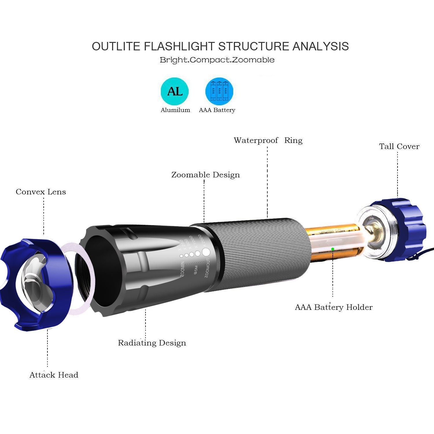 By turning the head part of the flashlight, it is very easy to use zoom in and zoom out.