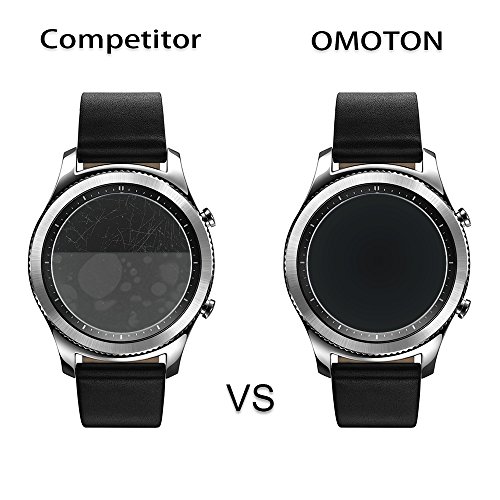 -. Binding : Wireless Phone Accessory -. Brand : OMOTON -. EAN : 0712243613359 -. Feature : Particular Design. Laser-cut dimensions provide maximum protection for the screen of your device. Only fit for Samsung Gear S3, will not fit for any other watches. / Scratch Resistant. This 9H Hardness screen protector can effectively protect your Samsung Gear S3 from unwanted scuffs and scratches by knife, keys and some other hard substances. / Easy installation. Bubble-Free Adhesive makes it easy to install this Samsung Gear S3 Screen Protector. / HD Retina Clarity. High-Transparency provide you high-definition clear viewing. Hydrophobic Oleophobic screen coating protects against sweat and oil residue from fingerprints and keeps high-sensitivity touch response. / BUY 2 SAVE 5%. If you buy 2 or more you will save 5% for each one at checkout (no coupon necessary). Buy for a friend or loved one and save together. And OMOTON Mall provide you friendly customer service and lifetime warranty. -. Label : OMOTON -. Manufacturer : OMOTON -. PackageQuantity : 1 -. ProductGroup : Wireless -. ProductTypeName : WIRELESS_ACCESSORY -. Publisher : OMOTON -. Studio : OMOTON -. Title : Samsung Gear S3 Screen Protector [3 Pack], OMOTON Tempered Glass Screen Protector for Gear S3 [9H Hardness] [Crystal Clear] [Scratch Resist] [No-Bubble] -. UPC : 712243613359