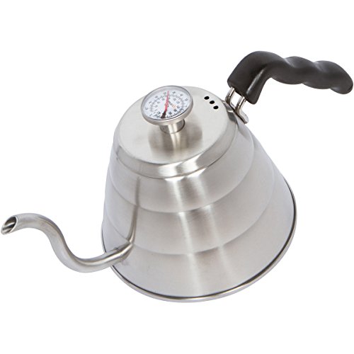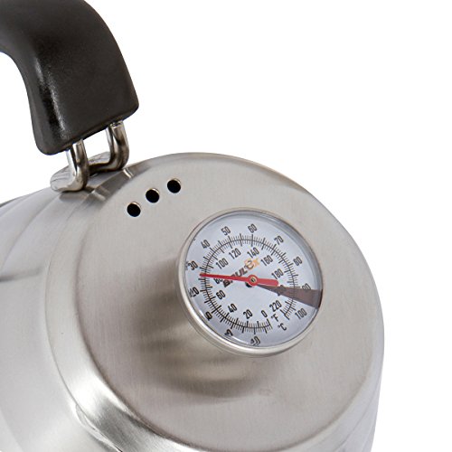 POUR OVER COFFEE KETTLE WITH INTEGRATED THERMOMETER SO YOU CAN DETERMINE THE TEMPERATURE YOU WANT: This unique feature helps you to determine the exact temperature you want for your water. Did you know that the optimum temperature is between 195-205F? Now you can make the perfect cup of coffee, exactly how you want it, without any scorched beans leaving a bitter taste. We’ve even highlighted the optimum temperature range, so you won’t have to guess!