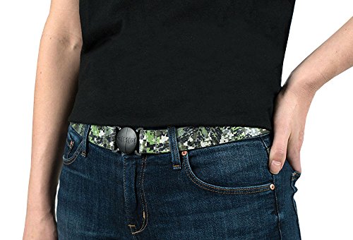 A comfortable belt made with recycled materials. Super low profile: No buckle bulge. Airport easy: Leave it on for security check. Grippy: Inner gel holds on tight. Eco-friendly 100% recycled elastic fits everyone. Versatile style: made for men and women.